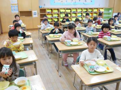 今週の月曜日から始まった給食。準備から片付けまで、全て自分たちで行います。最初は少し時間がかかっていましたが、素早く準備し、片付けもできるようになりました。
