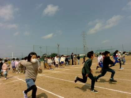 ランランタイムでは、50メートル走の練習をしています。少しでもタイムが縮まるようにと、一生懸命走る姿が見られました。