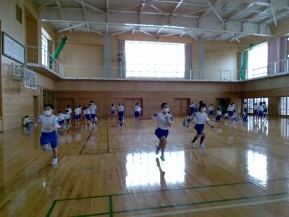 体育科の学習では、走り出しのコツを確認したり、しっぽ取りゲームをしたりしました。
