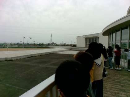 学校の高いところから、学校の周りの様子を観察しました。東西南北のどの方位に何があるかを確かめました。