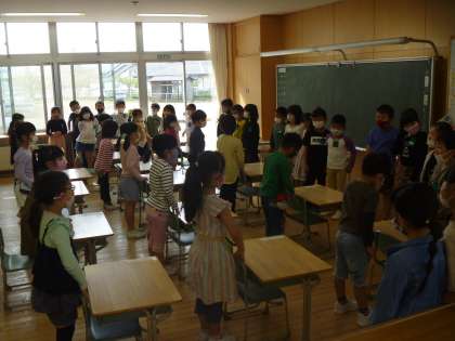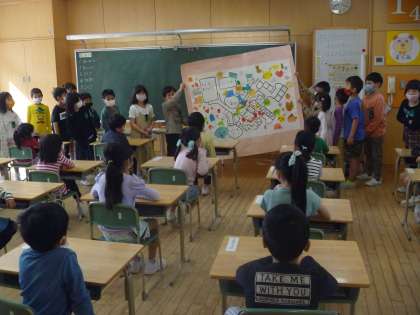 1年生に地図を渡した子供たちはうれしい表情をしていました。