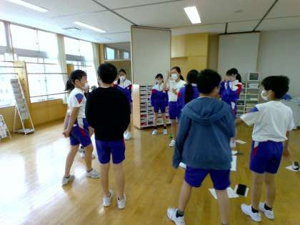 各団に分かれて、応援合戦の内容を考えています。応援歌や三三七拍子等を1〜5年生にも分かりやすい内容や地域の方でも聞いたことのある曲にしようと話し合っています。