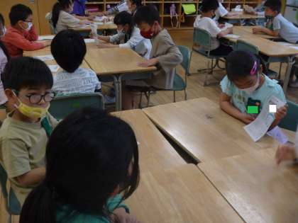 登校中に見付けた素敵な場所や物、人について、カードに書いて紹介しました。
