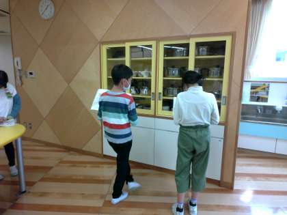 5年生から新しく家庭科の学習が始まりました。今日は家庭科室の探検をし、これからの学習でどんな物を使っていくのかを確認しました。