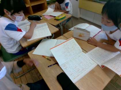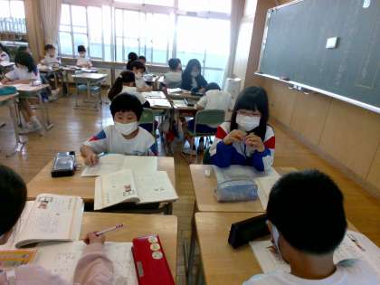 国語科の学習では、漢字の音読みと訓読みについて学習しました。音読みは中国語が由来であることに驚いている子供たちでした。