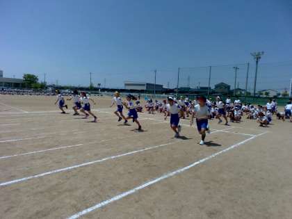 運動会に向けて、予行を行いました。50mを全力で走る姿が見られました。また、綱引きは予選を行いました。