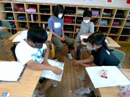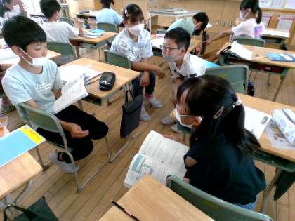 算数科「小数のかけ算」では、整数×小数の計算の仕方を考え、それを友達と伝え合いました。