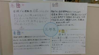 運動会が終わり、6年生が3年生の頑張っていたところを伝えに来てくれました。6年生の優しさが伝わりました。