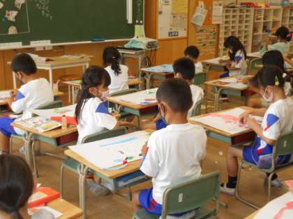 1年生 図工 「やぶいたかたちからうまれたよ」