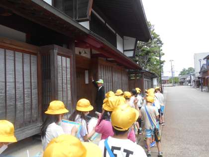 岩瀬の町並みを見学し、昔の家のつくりについて知ることができました。子供たちは、現在との違いに驚いていました。展望台にも登り、きれいな景色を見渡すことができました。