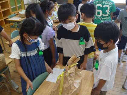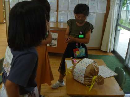 「耳や足のように見えるように縛っていて、いいね。」「動物の毛に見えるように飾っているね。」など、友達のよさを伝え合っていました。