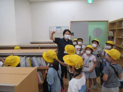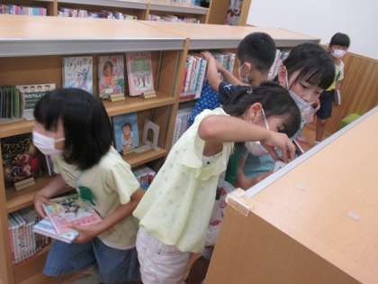 市立図書館豊田分館で、本を借りました。「怖い話の本は、どこにありますか」「虫の本は、どこにありますか」などと司書の方に尋ねながら、自分の目当ての本を探していました。