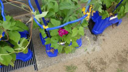 「先生、アサガオが咲いたよ!」