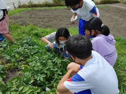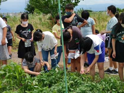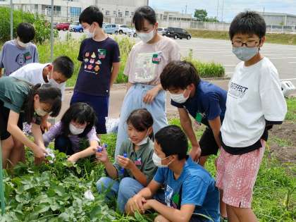 理科「植物のからだのはたらき」では、植物の葉と日光の関係を調べるために、アルミホイルでおおいをしました。