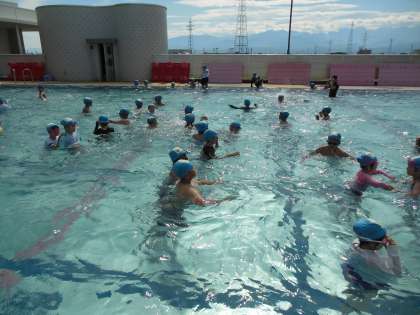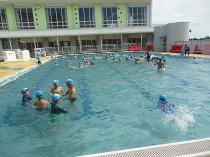 28日(火)、待ちに待った水泳学習が始まりました。プール開きからプールに入ることを楽しみにしていた子供たち。プールに入ると走ったり、泳いだりして元気いっぱいに動き回っていました。