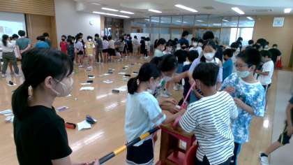 宿泊学習に向けて、しおりの内容を確認したり、活動の流れを動画を見て知ったりしました。森での活動時に必要になる縄で木をくくる練習も行いました。