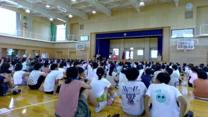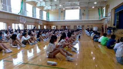 プロの演奏家の方々にお越しいただき、芸術鑑賞会を行いました。写真は、1・3・5年生の鑑賞の様子です。大きな手拍子をしながら、楽しみました。