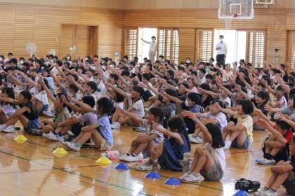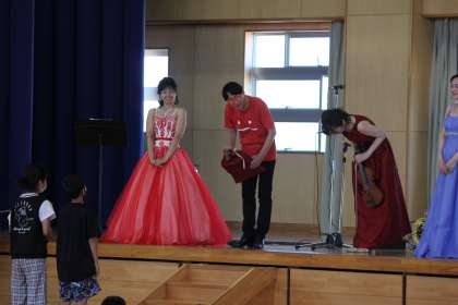 芸術鑑賞会では、2・4・6年生も手拍子をしたりクイズに答えたりして、会場全体が一体となりました。
