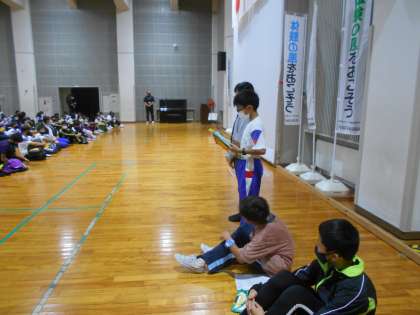 7月4日(月)〜5日(火)にかけて、6年生は、国立立山青少年自然の家での宿泊学習を行いました。出発式、入所式の様子です。