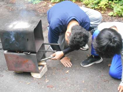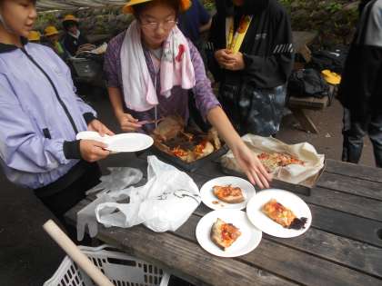 2日目は、ピザ作りを行いました。生地をこねたり、薪を組んで火を点けたりするなど、各自が役割を意識しながら活動しました。