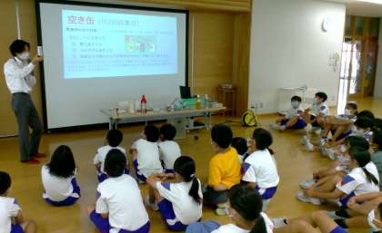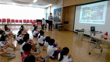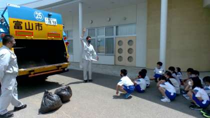 総合的な学習の時間に3R推進スクールがあり、リデュース・リユース・リサイクルの意味やごみの分別の仕方を聞いたり、ゴミ収集車の仕組みを見たりしました。子供たちは、どの話も興味津々で聞いており、「やっぱりしっかりごみは分別しないとだめだ」「ごみ収集車にはいろいろな工夫があった」などと振り返っていました。