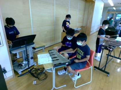 音楽では、「ラヴァーズ・コンチェルト」に取り組んでいます。パートを分け、音が美しく重なるように、楽器毎に練習に励んでいます。