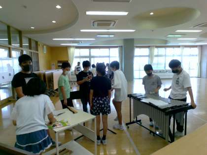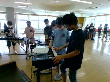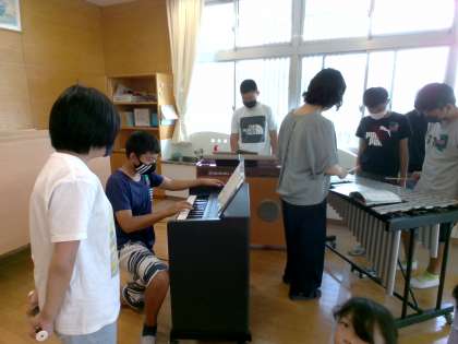 音楽科では、合奏に取り組んでいます。男女関係なく教え合う姿が見られるなど、協力しながら取り組んでいる6年生です。