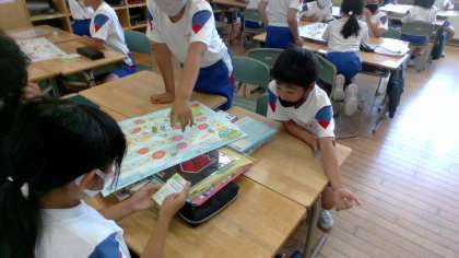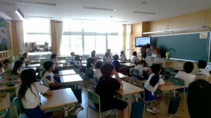 4年生のみんなは総合の学習で地球環境について学習をしているので、教えていただくことの中にたくさんの知っている用語もあったり、すごろくを使ったりして楽しみながら学習をしていました。