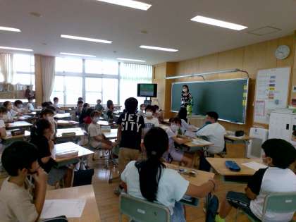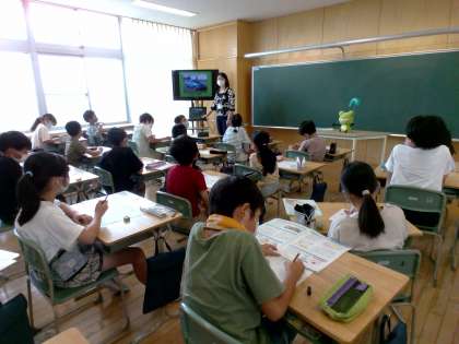 今日は、3組と4組で「ストップ地球温暖化」の授業がありました。