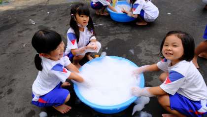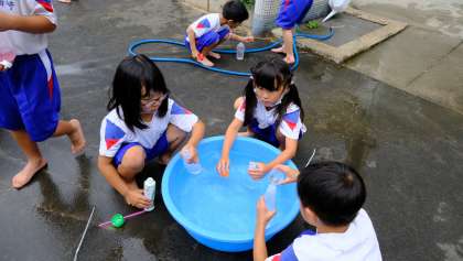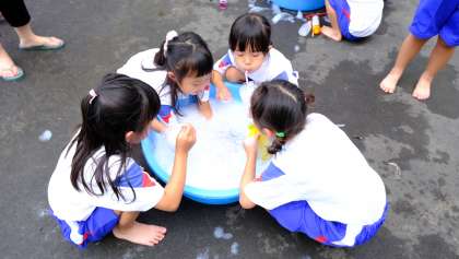 1組と2組は生活科で夏を楽しむ水遊びをしました。シャボン玉を作ったり、持ってきた道具で水を飛ばしたりして楽しそうでした。準備ありがとうございました。
