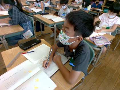 2学期が始まりました。少しずつ学校生活のリズムに慣れてきている子供たちです。グループの友達と話し合ったりノートをとったりするなど、学習に真剣に取り組む姿が見られます。