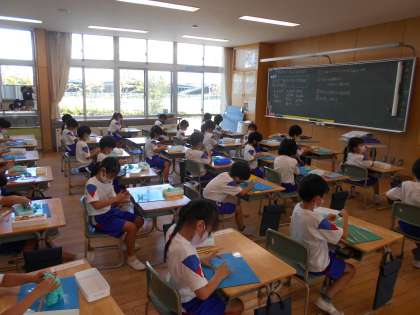 図画工作科では、粘土で料理やデザートを作りました。粘土板の上においしそうな作品ができました。