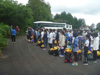 バスで移動し、赤とんぼ広場に着いたところです。入所式では、お世話になる子どもの村の方に挨拶をしました。