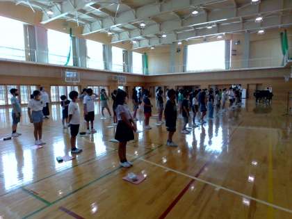 外部講師の碓井先生にお越しいただき、音楽会に向けて歌うコツを教わりました。足の裏が地面についているか確認し、足裏に響くように歌うことや、声を出すときに手を前に出すと声が出やすくなること等、基本的な声の出し方を教えてもらいました。子どもたちの歌声は以前よりも大きくなっていました。
