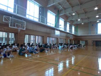 「学び発表会」に向けて練習を行いました。代表児童による呼びかけでは、以前よりも大きな声ではっきりと言う姿に、見ていた児童から拍手が起こりました。
