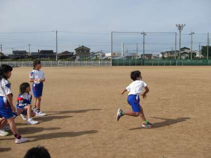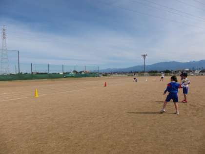 子供たちは、チームの仲間たちと真っすぐ、遠くに投げるよう意識してゲームに取り組みました。