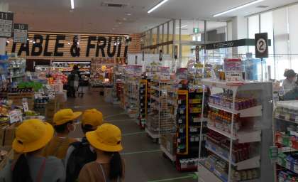 大阪屋ショップ豊田店の店内を見学しながら、お店の人が商品を売るために工夫していることを調べたり、お客さんにインタビューをしてお店のよさを教えてもらったりしました。