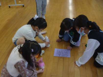 「みんなで遊べるように、遊び方の約束を考えたよ。」「みんなで遊べるようにたくさんおもちゃを作ったよ。坂道も作ったよ。」など、みんなで楽しく遊ぶことができるように工夫を考えていました。