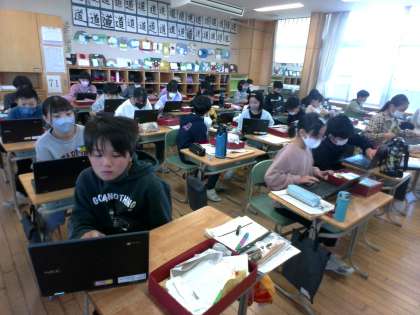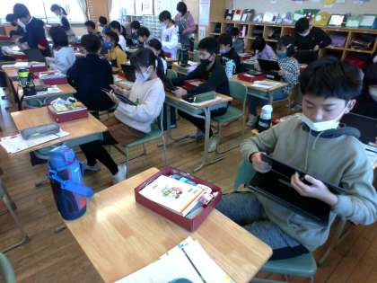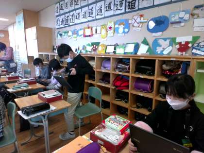 家庭科「物を生かして住みやすく」では、道具箱の中身を見て、よく使うものと使わないものに分けました。次回、よく使うものの置く位置を考え、整頓する予定です。