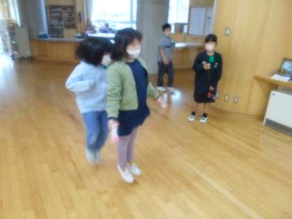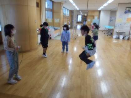 休み時間に思い思いの遊びを楽しむ子供たち。二重跳びや交差跳び等を友達と見合いながら練習したり、ペアで一緒に縄に入るペア跳びを楽しんだりしています。「もしもし亀よ」と歌いながら、けん玉をするなど技を楽しんで磨いている子供もいます。