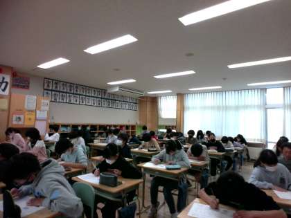 2学期末になり、学習のたしかめを行っている6年生です。今日は理科の問題に取り組みました。