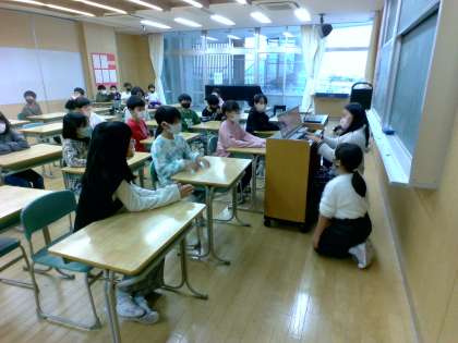 学級のみんなで、とてもきれいな音色を聞きながら、クイズを楽しみました♪