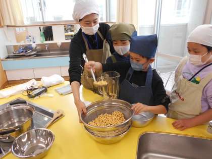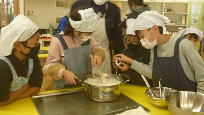 総合的な学習の時間に「大豆はかせになろう」の学習に取り組んでいます。1日(木)は3組、2日(金)は4組が大豆から豆腐をつくる過程を実際に体験しました。豆腐作りの難しさや楽しさを感じながら取り組みました。