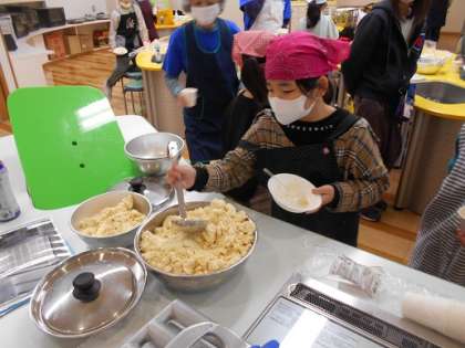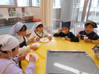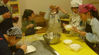 自分たちで作った豆腐や作る工程でできたおからを食べました。それぞれの班の豆腐の味を比べながら、美味しくいただきました。
