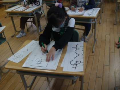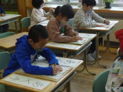 1月に行われる校内書き初め大会に向けて練習を始めました。子供たちは、字形や止め、払い等に気を付けながら、集中して練習していました。