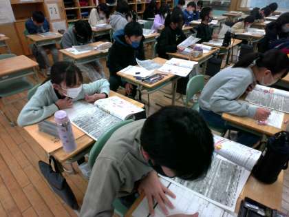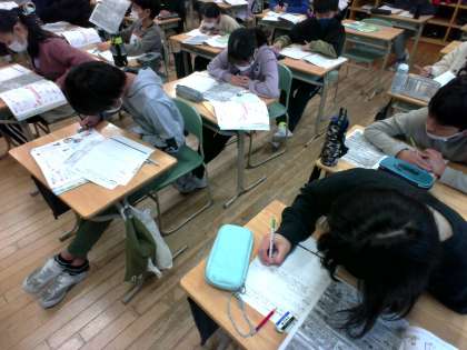 家庭科「物を生かして住みやすく」では、豊田地区のごみの出し方について調べ、粗大ごみを出すとお金がかかることや、ごみを出せる曜日が決まっていること等を知りました。