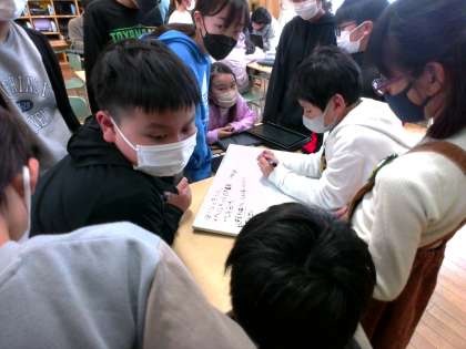 総合「それいけ安全マン 高めよう安全意識 広げよう全校へ」では、これまで調べたことや対策したことをグループの友達に報告し、今後の計画を立てました。