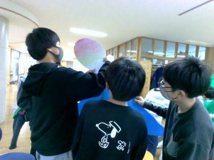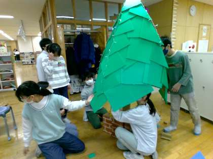 季節の行事にあった物をつくろうと、クリスマスツリーや福笑いなどを製作しました。男女関係なく協力し合う姿が素敵でした。