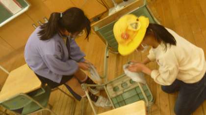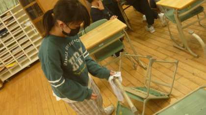 気持ちよく新年を迎えられるように、机や椅子についた汚れをきれいに拭き取りました。