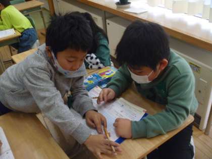 「1目盛りいくつなのか考えると、数が分かるよ」という意見から、1目盛りの数を意識しながら考えていました。